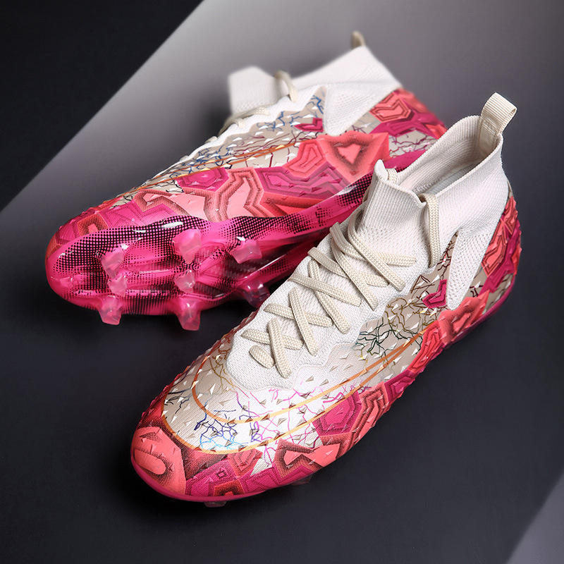 Putian Men's & Women's High Top Seamless Football Shoes Large Size TF Broken Nails Mesh Lace-Up Closure Winter Long Nail Design