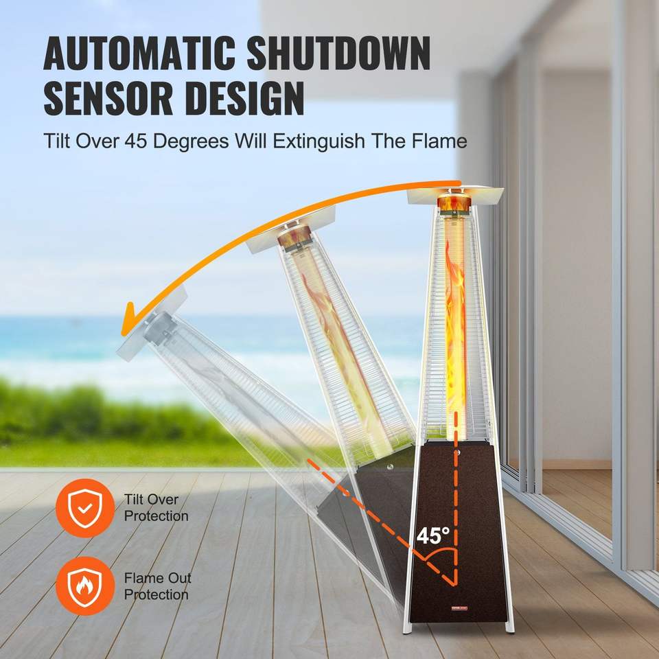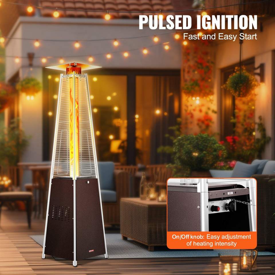 Riscaldatore a Propano per Esterni a Forma di Piramide 48000BTU con Tubo in Vetro al Quarzo e Ruote