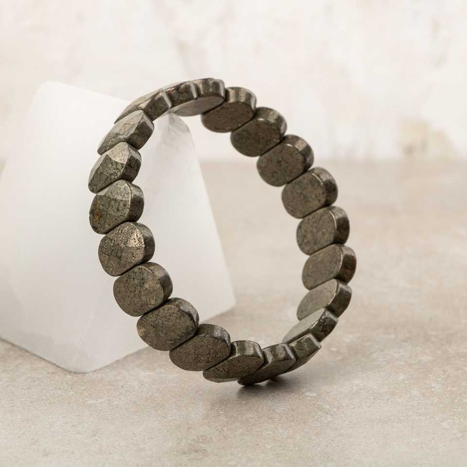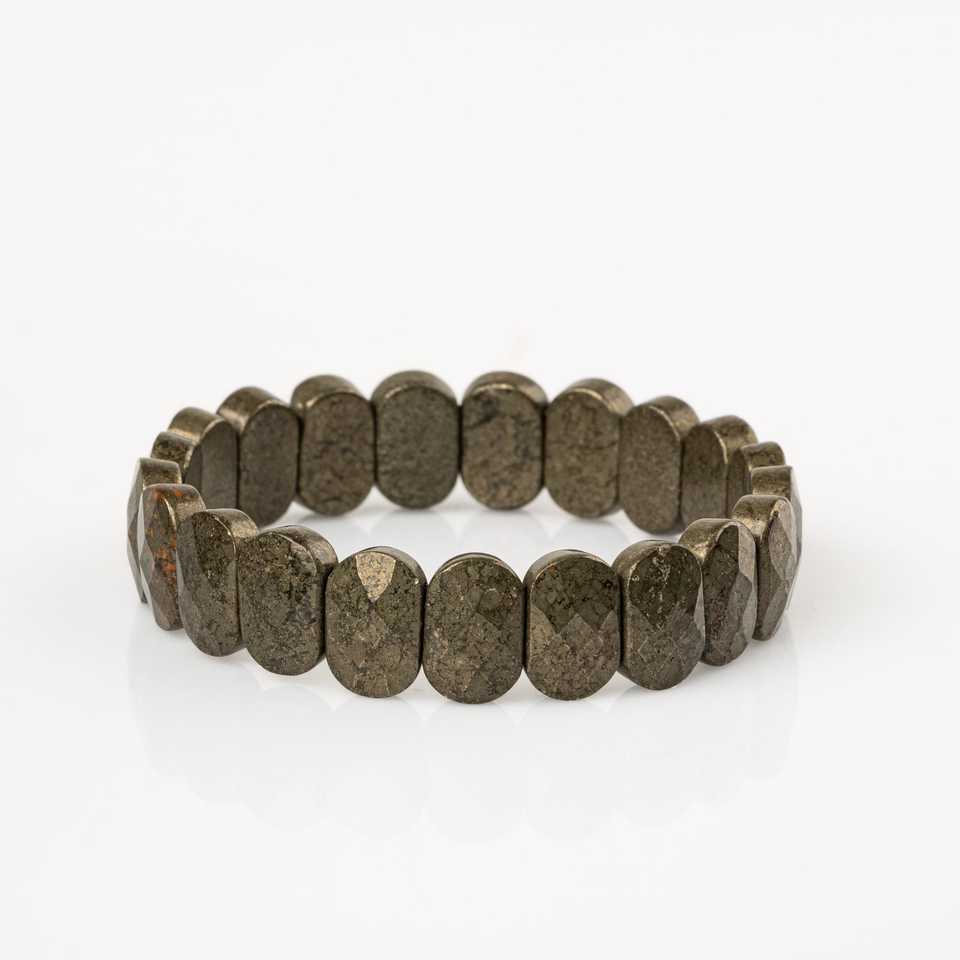 Pyrite Natural Stone Wide Cut Bracelet