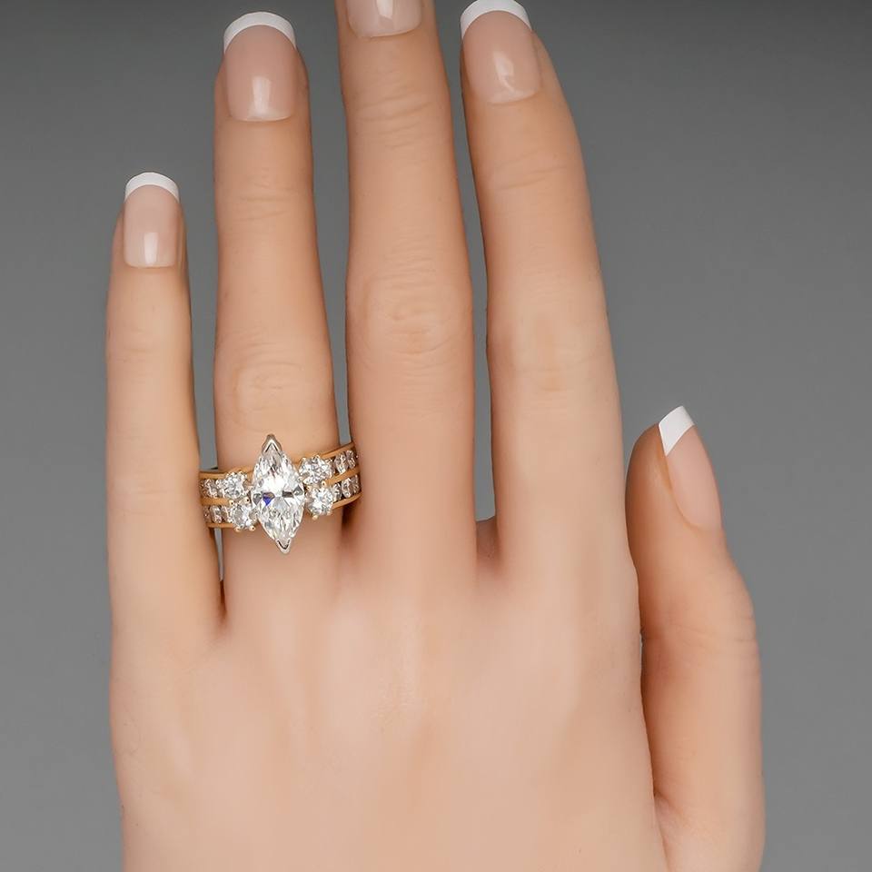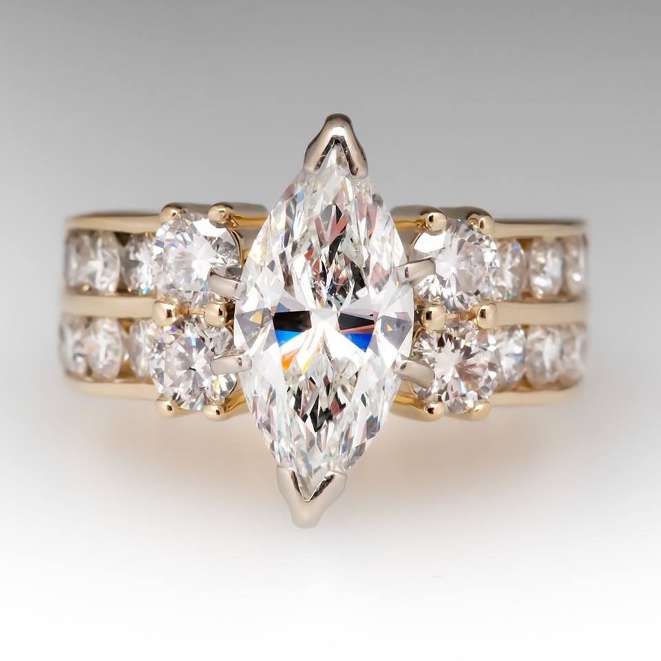 Q002 Women's 18K Solid Gold Marquise Cut Diamond Engagement Ring With Round Brilliant Side Stones D Color Natural Diamonds