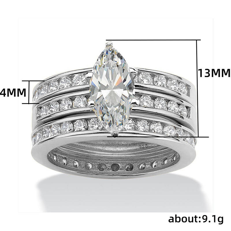 Q017 Marquise Cut Diamond Ring Silver Women's Engagement Natural G Color Side Stones
