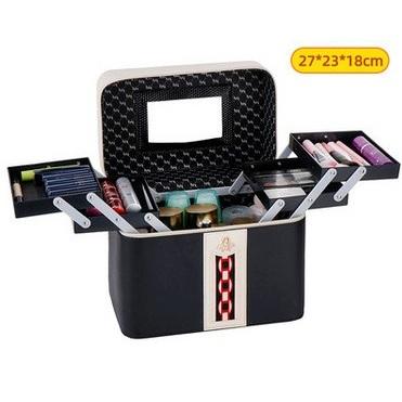 Q02-18642-1 Black Fashionable Women's Cosmetic Storage Box Elegant Stylish Travel Organizer Portable Makeup Case for Beauty Care