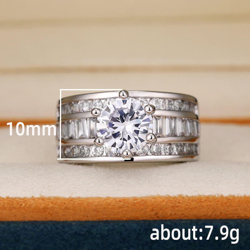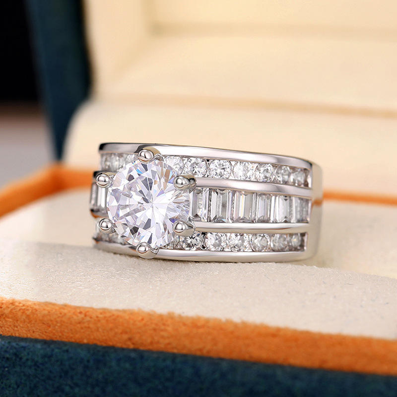 Q021 Women's Diamond Ring 925 Sterling Silver Round Brilliant Cut Synthetic Lab Grown Diamond Engagement Ring Baguette Side