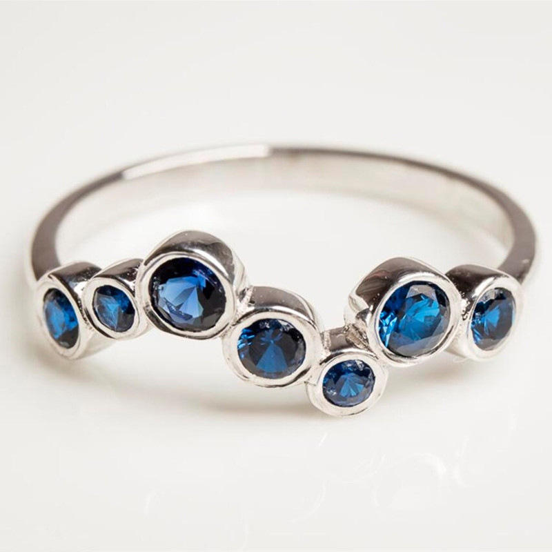 Q088 925 Silver Gemstone Ring Bezel Setting Blue Stones Unisex Everyday Wear