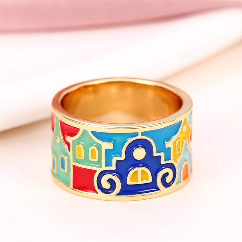Q090 Cocktail Ring Gold Plated Enamel Letter Design Unisex Fashion Jewelry Gift