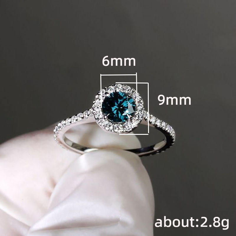 Q092 Crown Sapphire Engagement Ring White Gold Round Brilliant Cut Pave Setting Women's Fine Jewelry