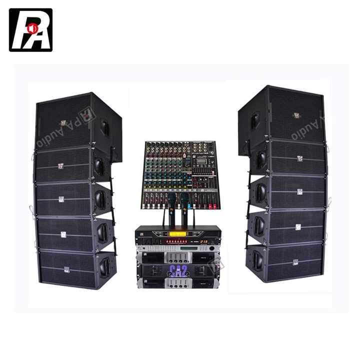 Q1 Professional Audio Line Array Speaker Set 8ohm Impedance with 2 Channel Wireless Microphone and Mixer Console