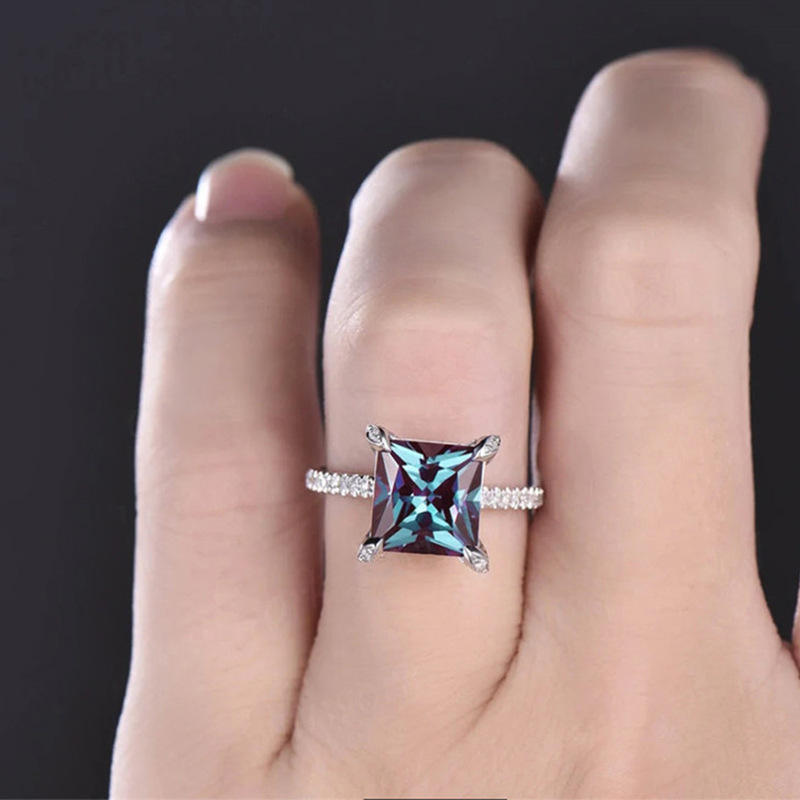 Anello con diamante taglio Princess Q119 con diamanti laterali naturali di colore fantasia per gioielli di fidanzamento da donna