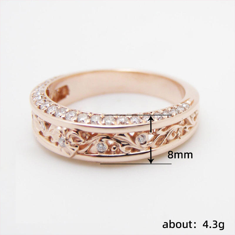Q120 Rose Gold Diamond Ring Women's Wedding Band Round Brilliant Cut Natural G Color Side Stones Elegant Design