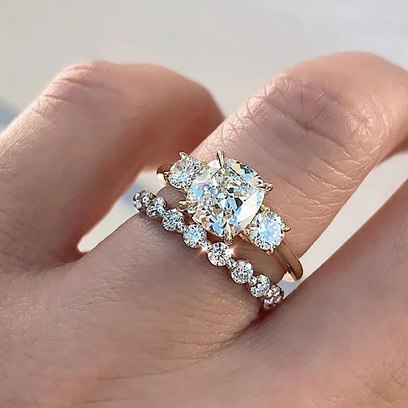 Anello Q136 in Oro Rosa con Diamante Taglio Cushion, Diamante Naturale per Fidanzamento, Gioielli da Donna, Colore D, Pietre Laterali