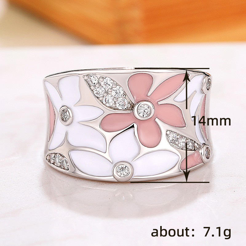 Anello Cocktail Q165 con Fiore in Argento 925, Cristalli e Strass, per Uso Quotidiano Femminile