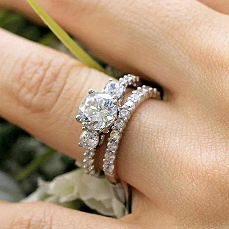 Q169 Women's White Gold Diamond Engagement Ring Round Brilliant Cut Natural G Color Side Stones