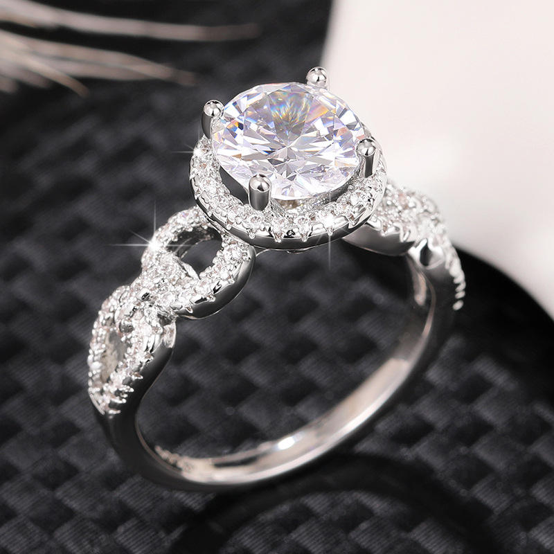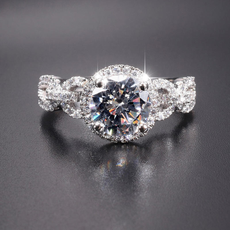 Q175 Women's White Gold Diamond Engagement Ring Round Brilliant Cut Natural G Color Halo Setting