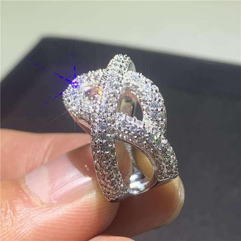 Anello da Cocktail Geometrico Q201 da Donna con Zirconia Cubica Creata in Laboratorio, Micro Pavé, Anelli di Moda per Matrimonio