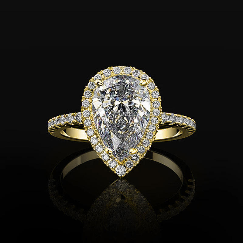 Q263 Women's White Gold Pear Cut Diamond Engagement Ring Natural D Color Halo Setting