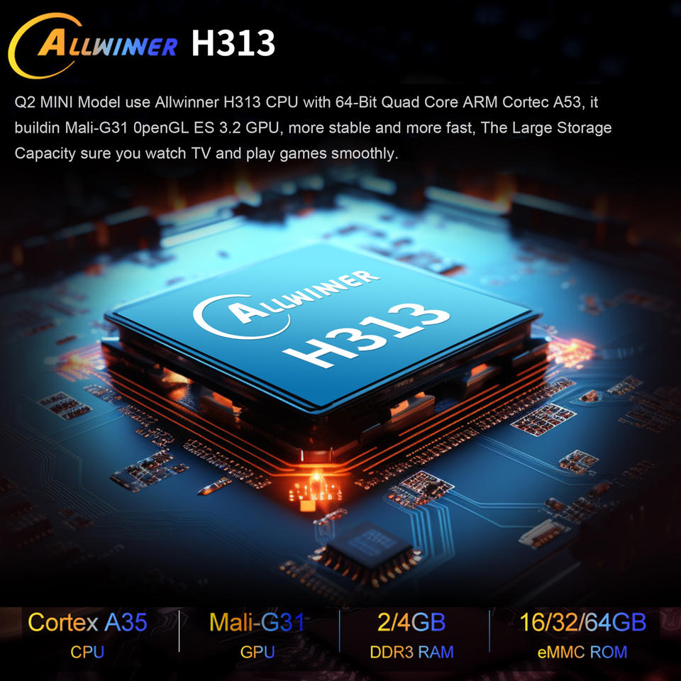 Q2MINI Set-Top Box di Rete 4K HD Video Smart Allwinner H313 con Telecomando Vocale Zoku Q2 Mini 2GB RAM 16GB ROM Android TV Box