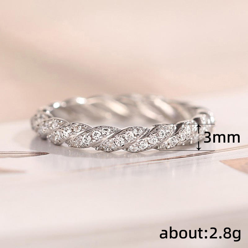 Anelli a fascia intrecciata Q319 con pavé di diamanti naturali rotondi, anello unisex da matrimonio alla moda.
