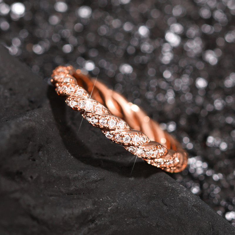 Q320 Luxury Women's 18K Solid Gold Diamond Ring Round Brilliant Cut Natural D Color Wedding Band