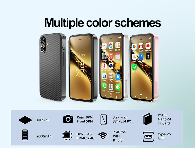 Q333 Small 4G Smartphone Octa 4GB/64 GB Android Smart Small Mobile Phone 3.97 Inch IPS 3G LTE Mini Global Smartphone