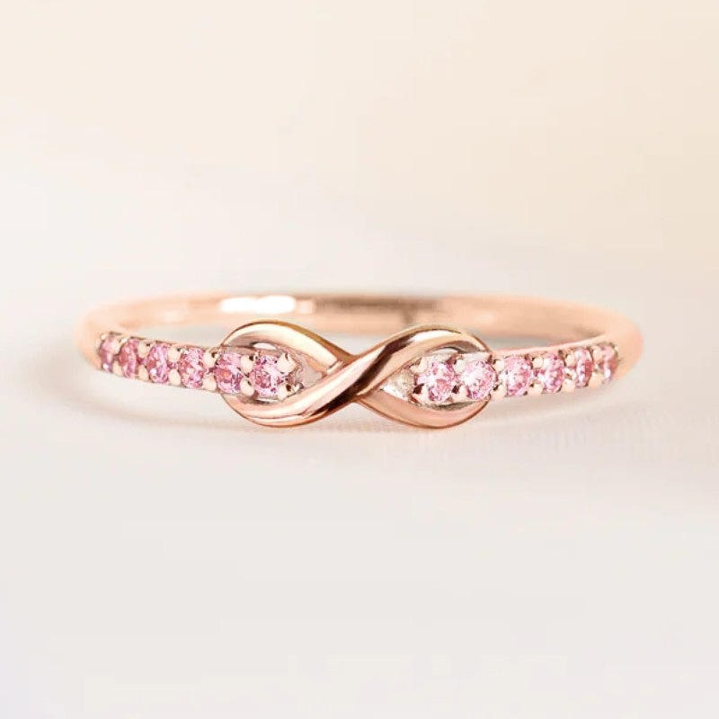 Q338 Infinity Moissanite Eternity Band Ring Rose Gold Women's Engagement Ring Round Brilliant Cut Channel Setting