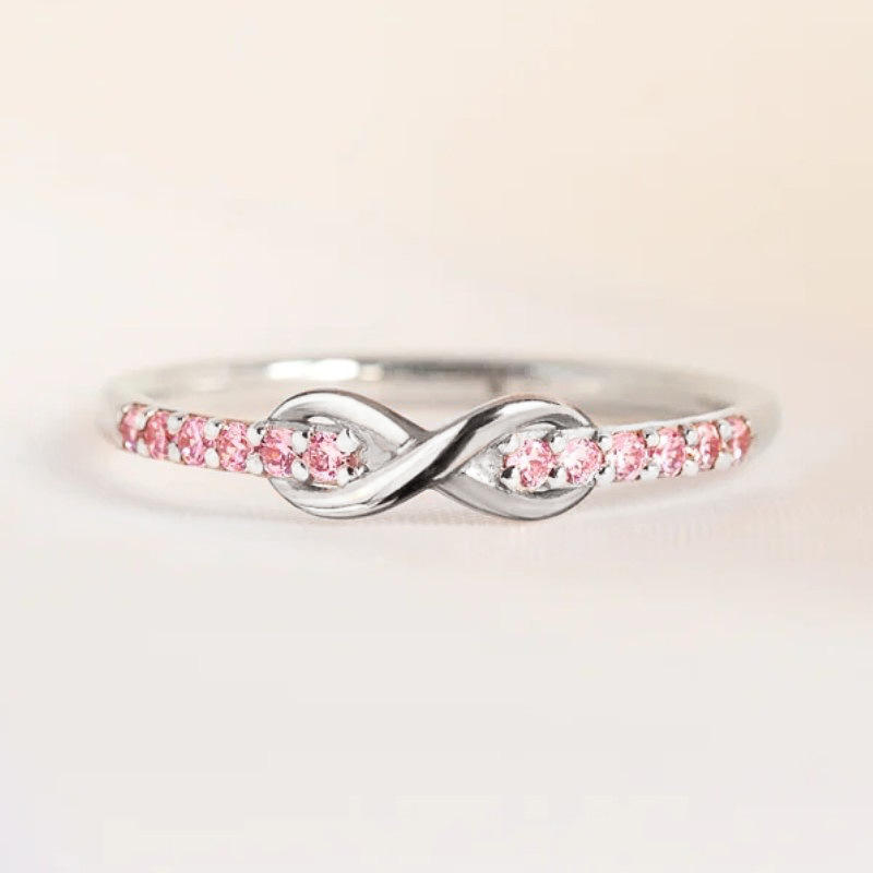Anello Infinity in Argento Q339 per Donna con Diamante Rosa Taglio Brillante Rotondo, Gioiello di Fidanzamento