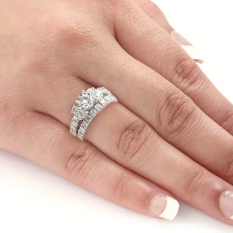 Q368 White Gold Diamond Engagement Ring Women's Round Brilliant Cut Natural G Color Side Stones