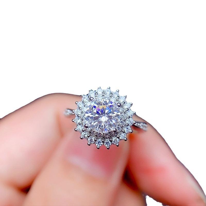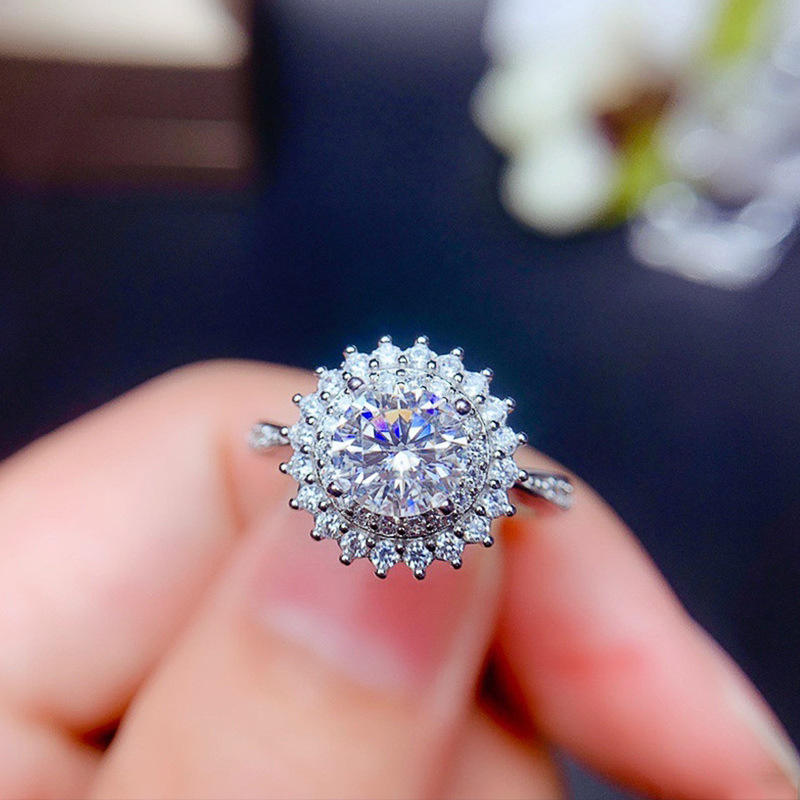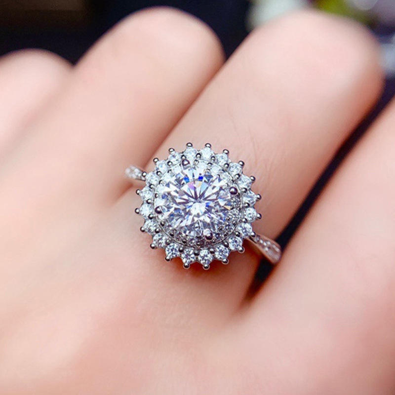 Q372 Women's White Gold Diamond Ring Round Brilliant Cut Natural D Color Engagement Halo Design