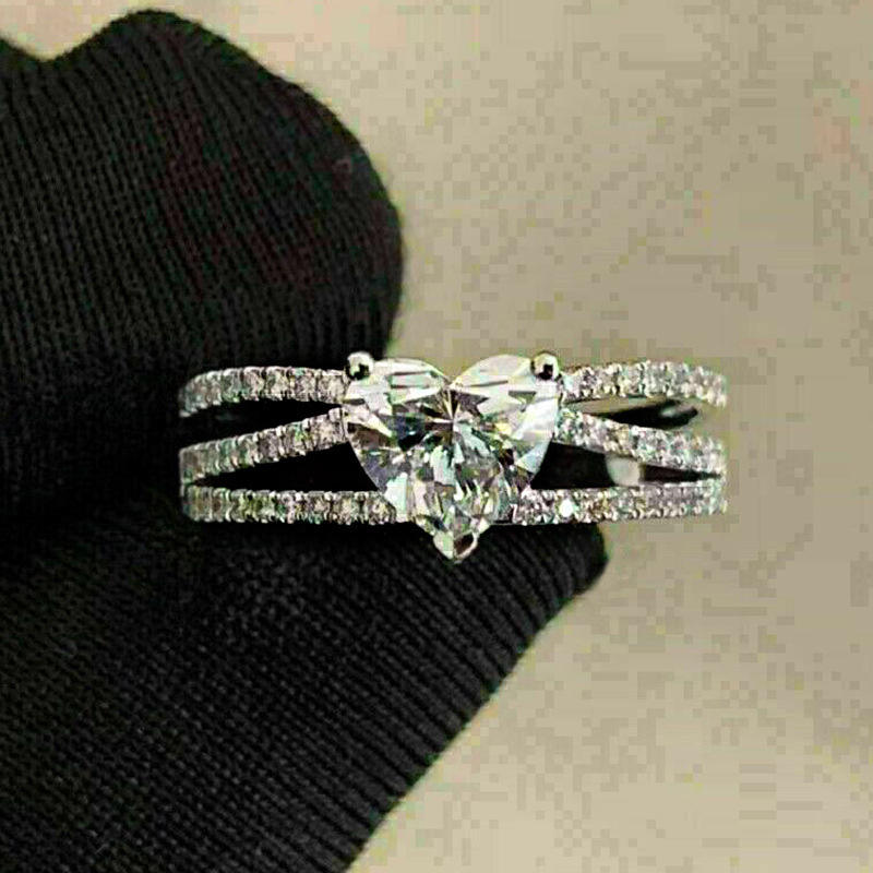 Q427 Women's White Gold Heart Cut Diamond Engagement Ring Natural G Color Side Diamonds