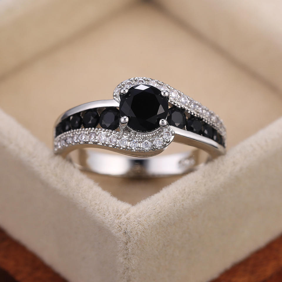 Anello di Fidanzamento Q461 a Forma di Cuore in Argento Sterling 925 con Diamante Taglio Brillante Rotondo, Gioielli da Donna