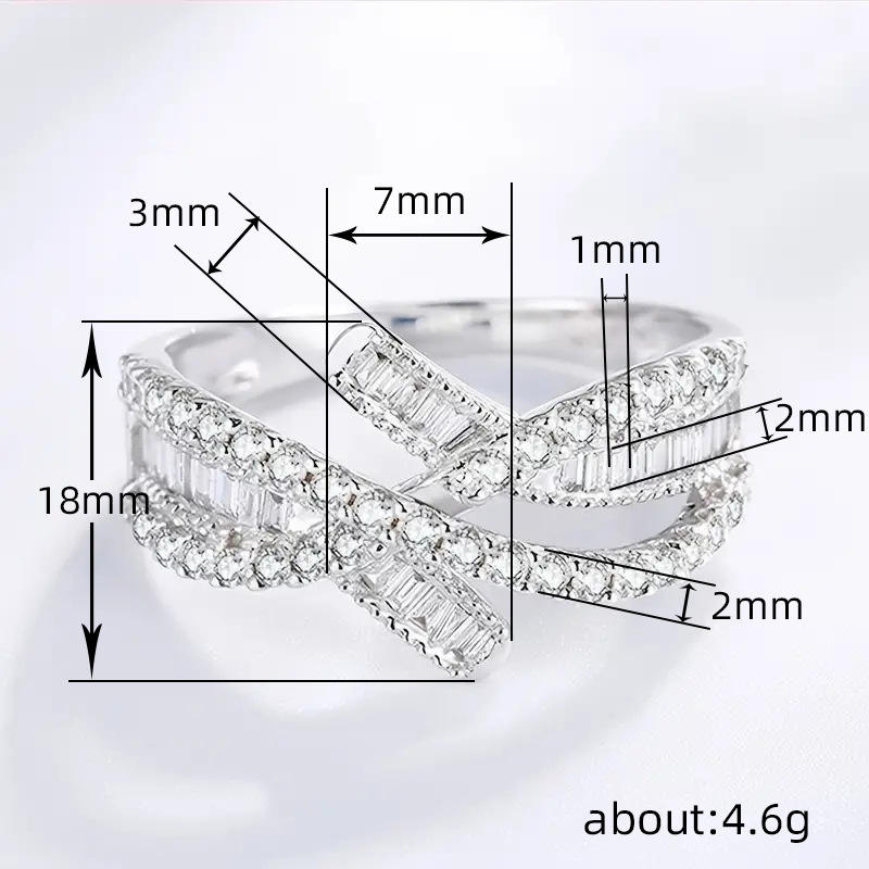 Q487 Luxury Women's White Gold Diamond Ring Baguette Cut Natural D Color Engagement Style