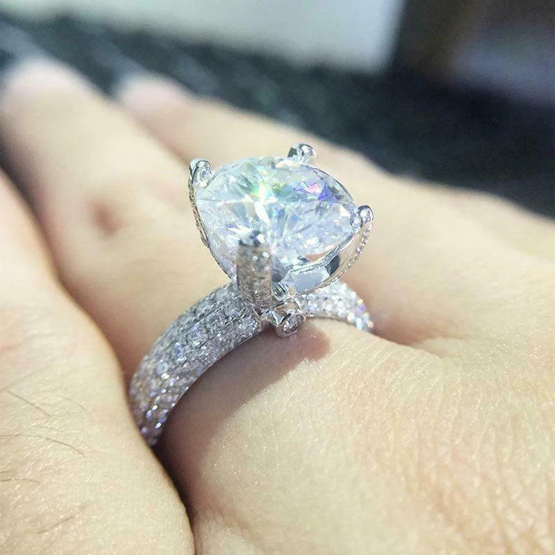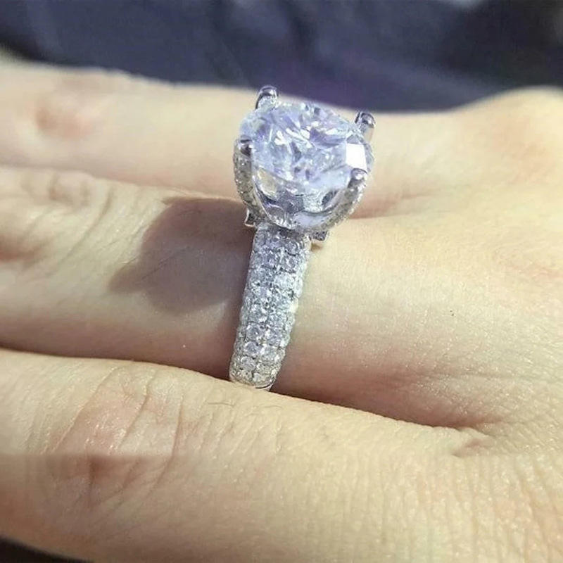 Q547 Women's White Gold Diamond Ring Round Brilliant Cut Synthetic Lab Grown Diamond Engagement Ring G Color