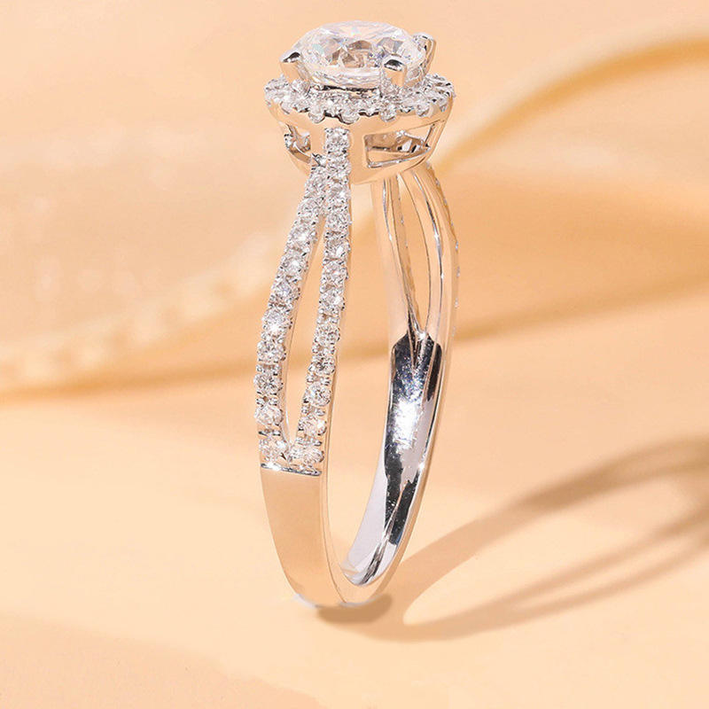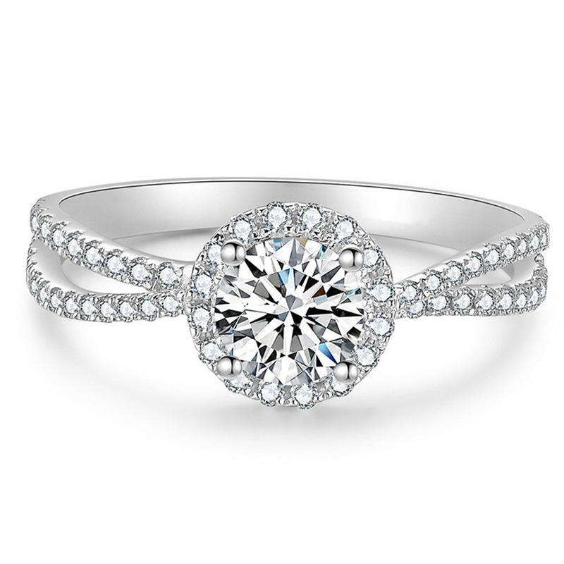 Q550 Women's Classic Engagement Ring Round Brilliant Cut Synthetic Diamond Halo Band With Side Stones