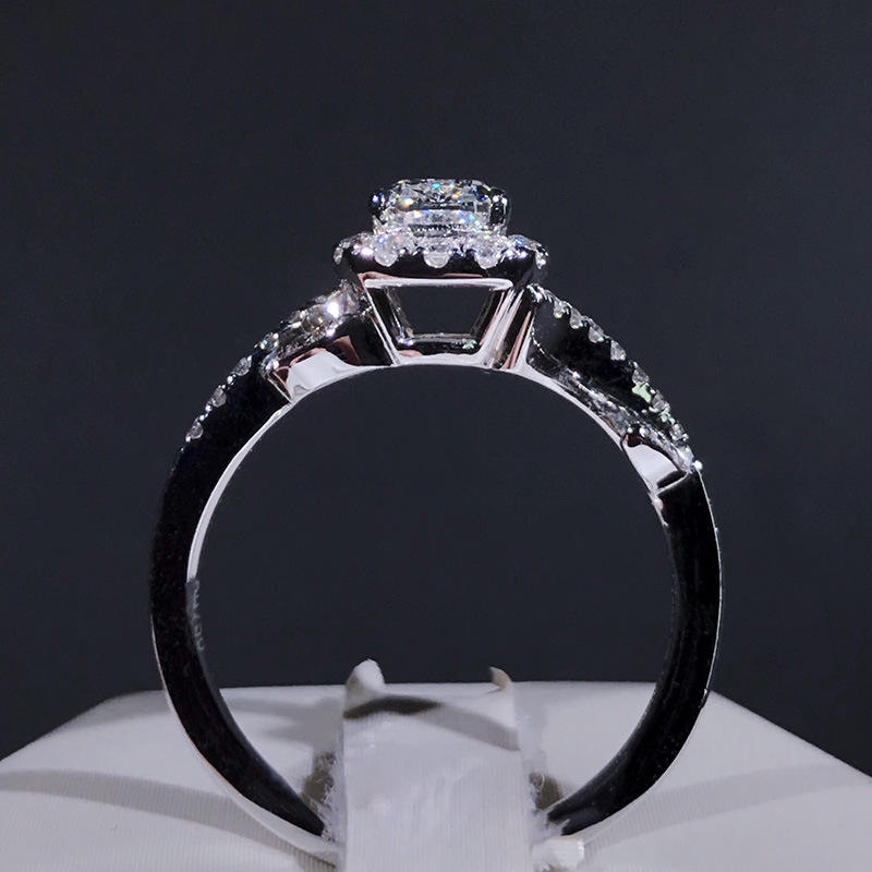 Q574 White Gold Diamond Ring Cushion Cut Natural D Color Engagement Women's Jewelry