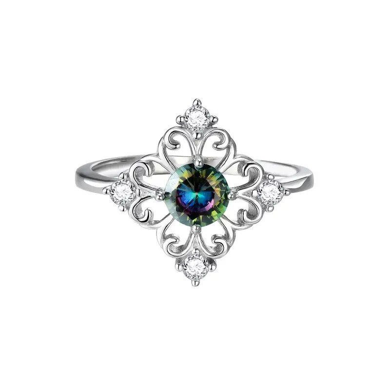 Q594 Diamond Ring Women's Engagement Round Brilliant Cut Natural Fancy Diamond D Color Side Stones 14K White Gold