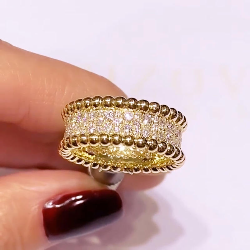 Q614 Women's 18K Solid Gold Eternity Band Ring Round Brilliant Cut Diamond Pave Setting Ball Pattern Wedding Fine Ring