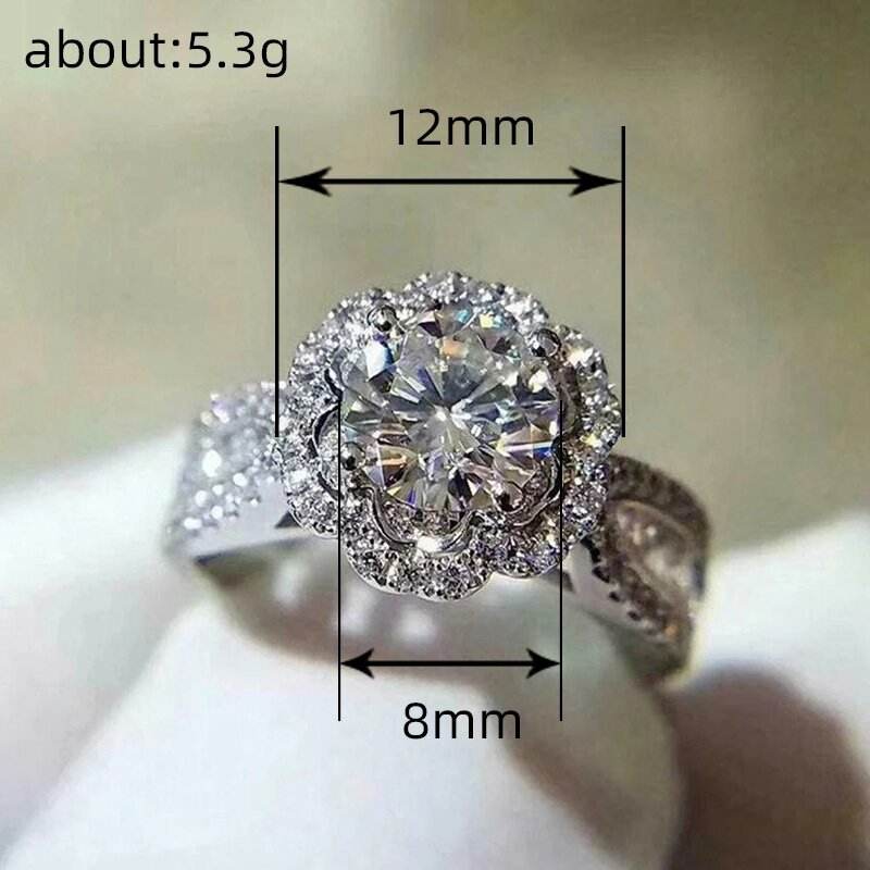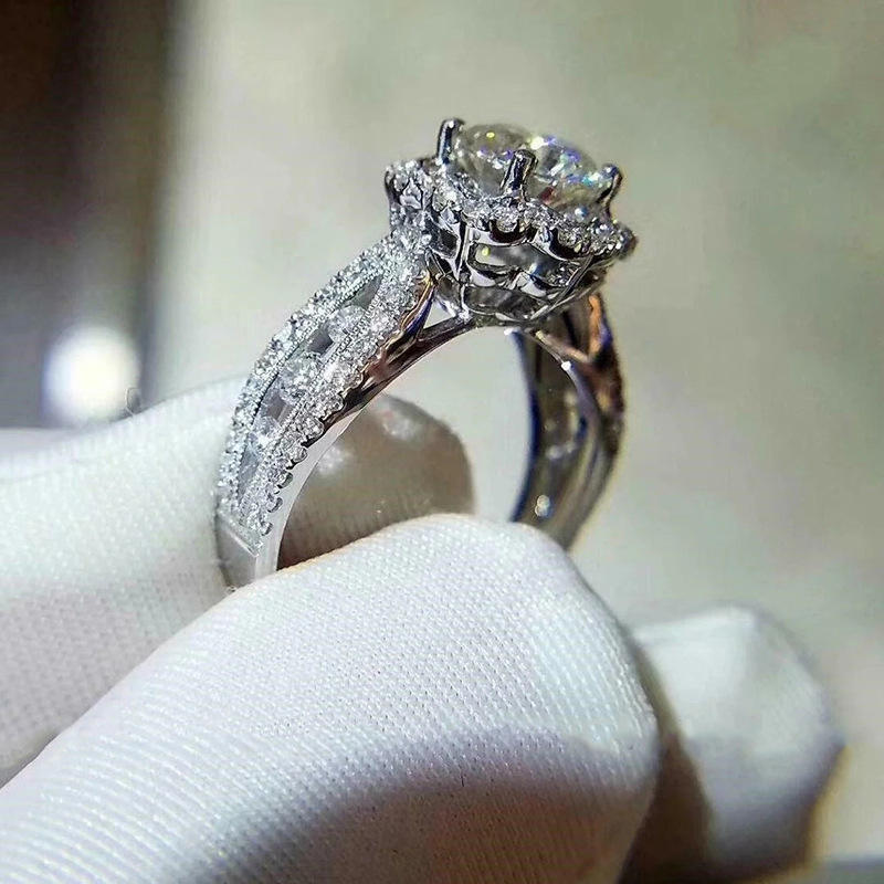 Anello Q641 in Oro Bianco con Diamante Naturale Taglio Brillante Rotondo, Colore D, Design Halo per Fidanzamento Femminile