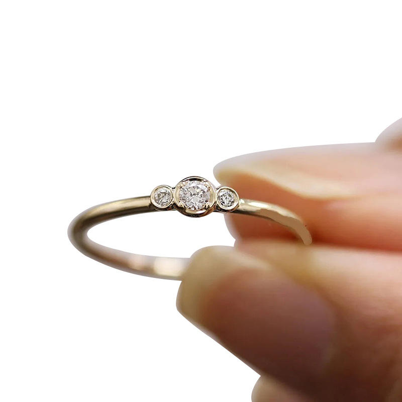 Q648 Women's 18K Solid Gold Diamond Ring Round Brilliant Cut Natural G Color Classic Engagement Style