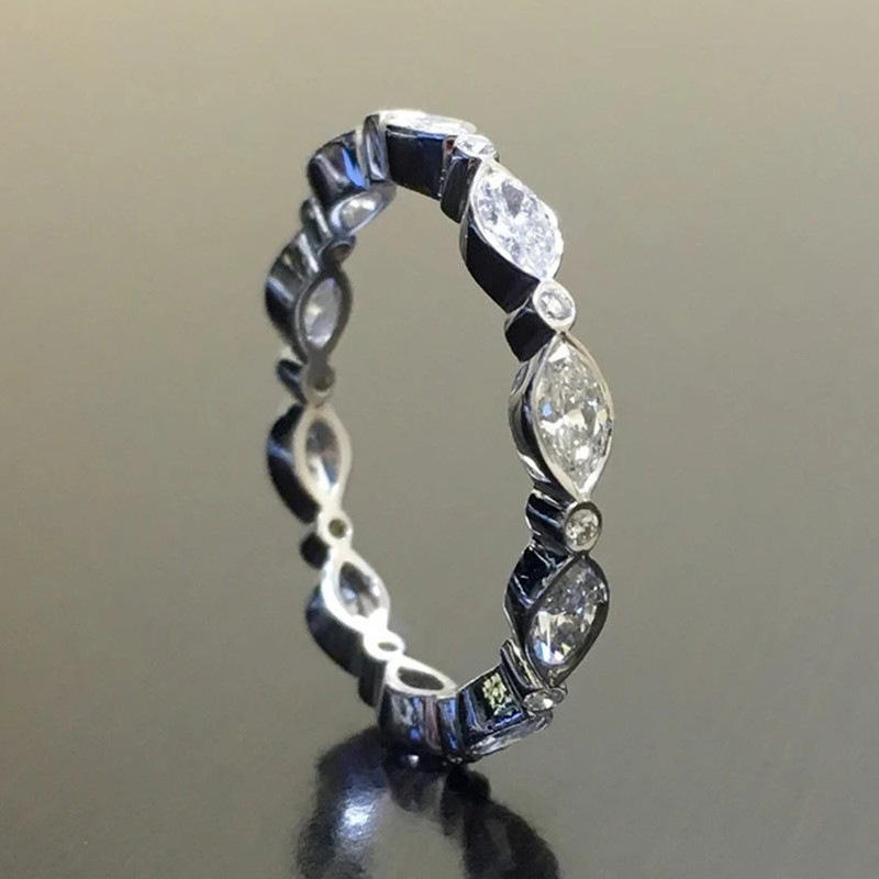 Q659 Women's White Gold Marquise Cut Natural Diamond Engagement Ring Classic Style D Color