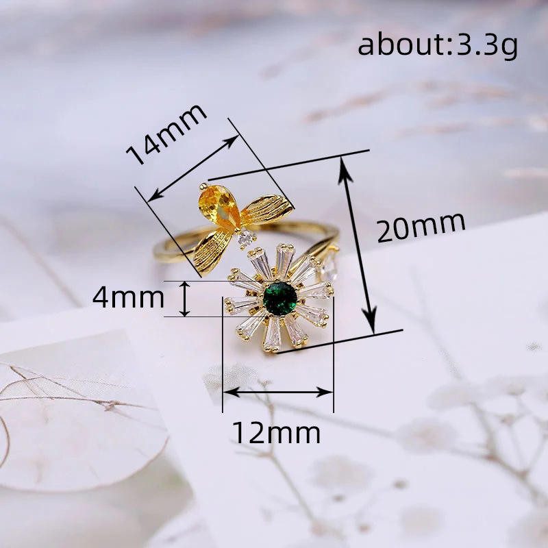 Q724 Flower And Angel Wings Ring Set Zinc Alloy Zircon Women's Fashion Jewelry Gift