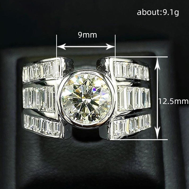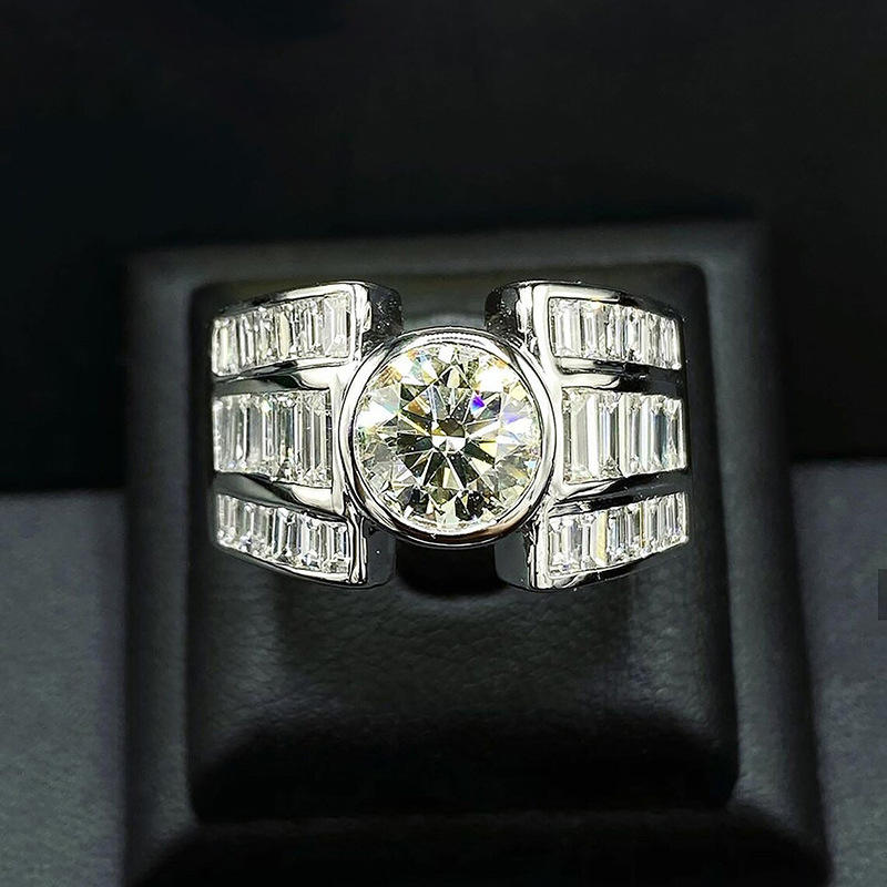 Q739 Women's White Gold Diamond Ring Round Brilliant Cut Baguette Side Stones Engagement D Color Natural Diamond