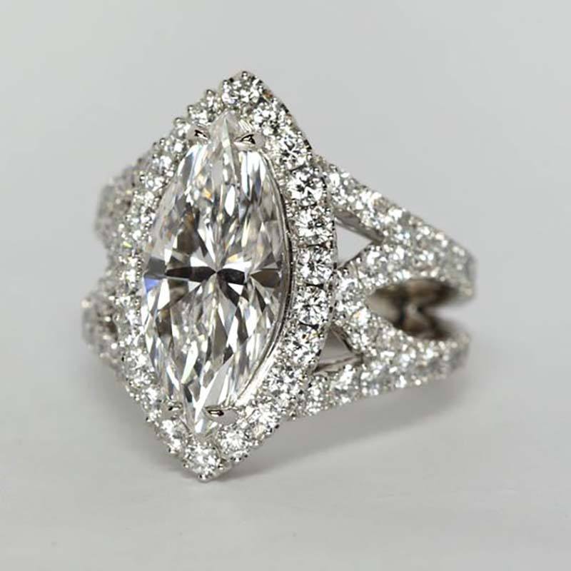 Q790 Women's White Gold Diamond Engagement Ring Marquise Cut Natural D Color Halo Design