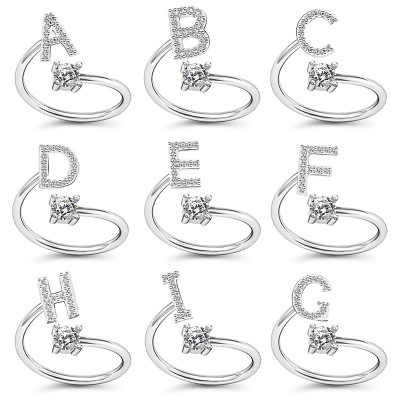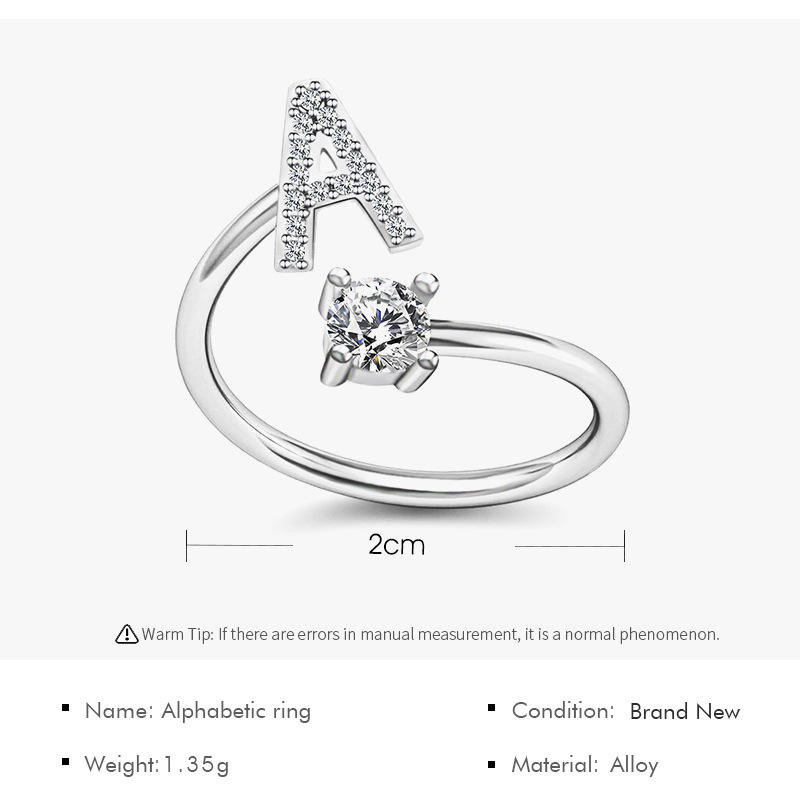 Q826 donne strass regolabile a - Z lettere nome iniziale anello impilabile anelli alfabeto
