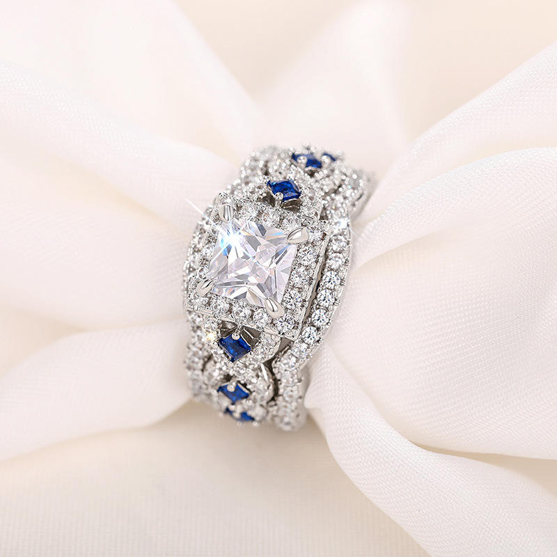 Q922 Women's White Gold Diamond Ring Princess Cut Natural D Color With Sapphire Side Stones Engagement Ring