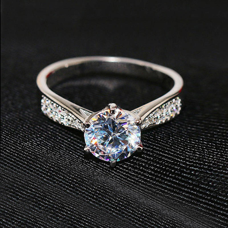 Q945 Women's White Gold Diamond Ring Round Brilliant Cut Natural G Color Engagement Jewelry With Side Diamonds
