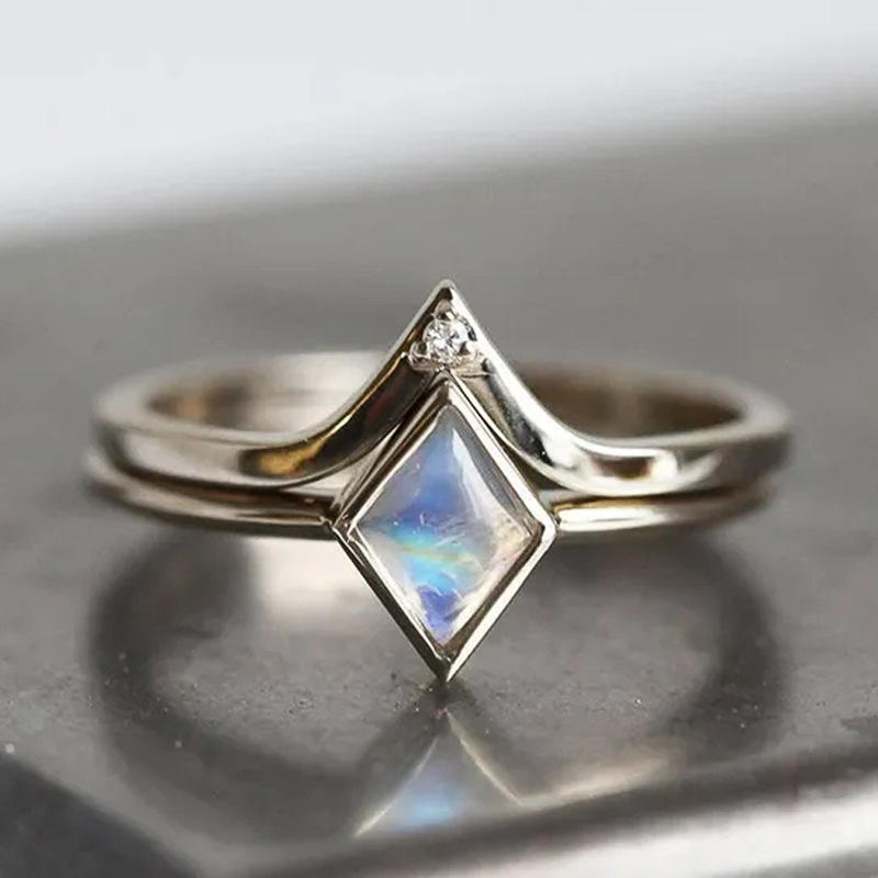 Q953 Geometric Moissanite Ring 925 Silver Bezel Setting Engagement Band For Women