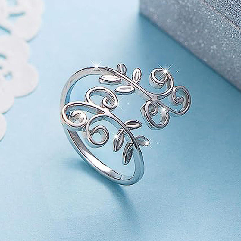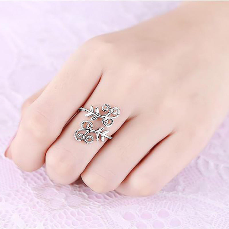 Q983 Plant Pattern Fashion Ring Bohemian Style Unisex Gift Jewelry No Stone Setting Silver Tone