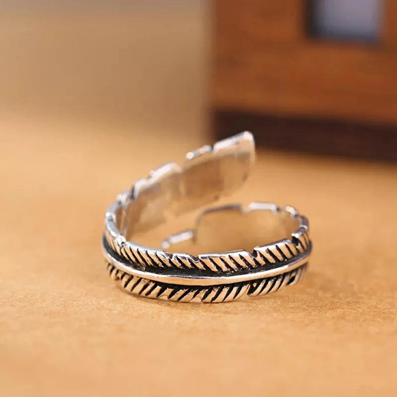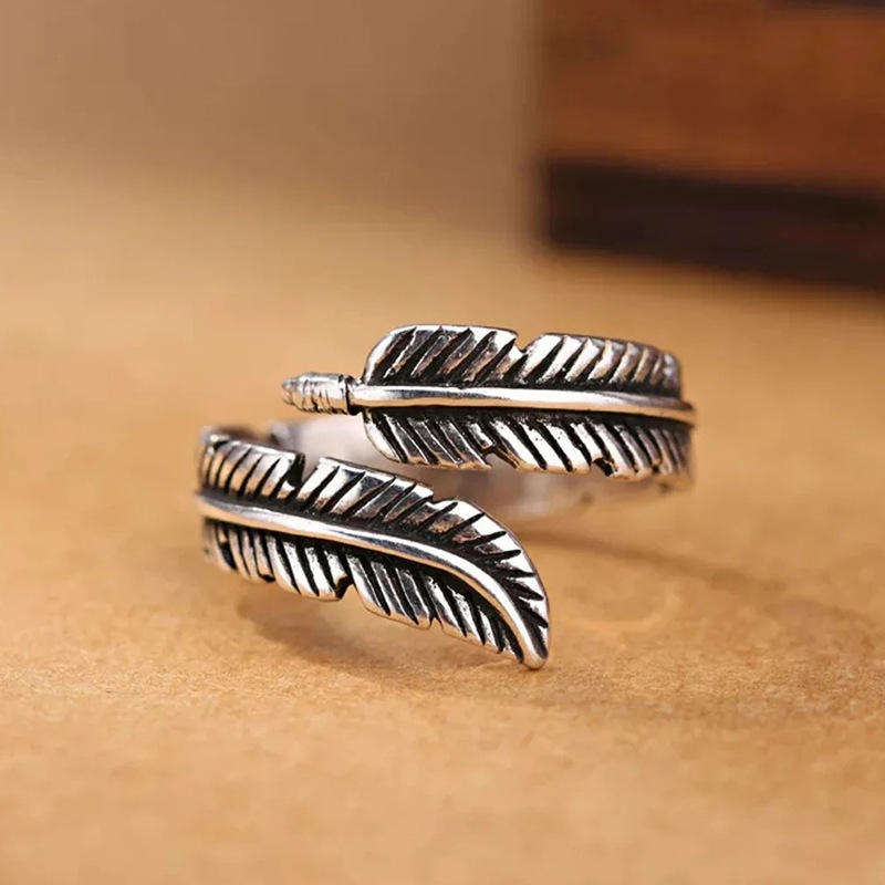 Q984 Feather Ring Alloy Antique Silver Plated Unisex Fashion Jewelry Gift