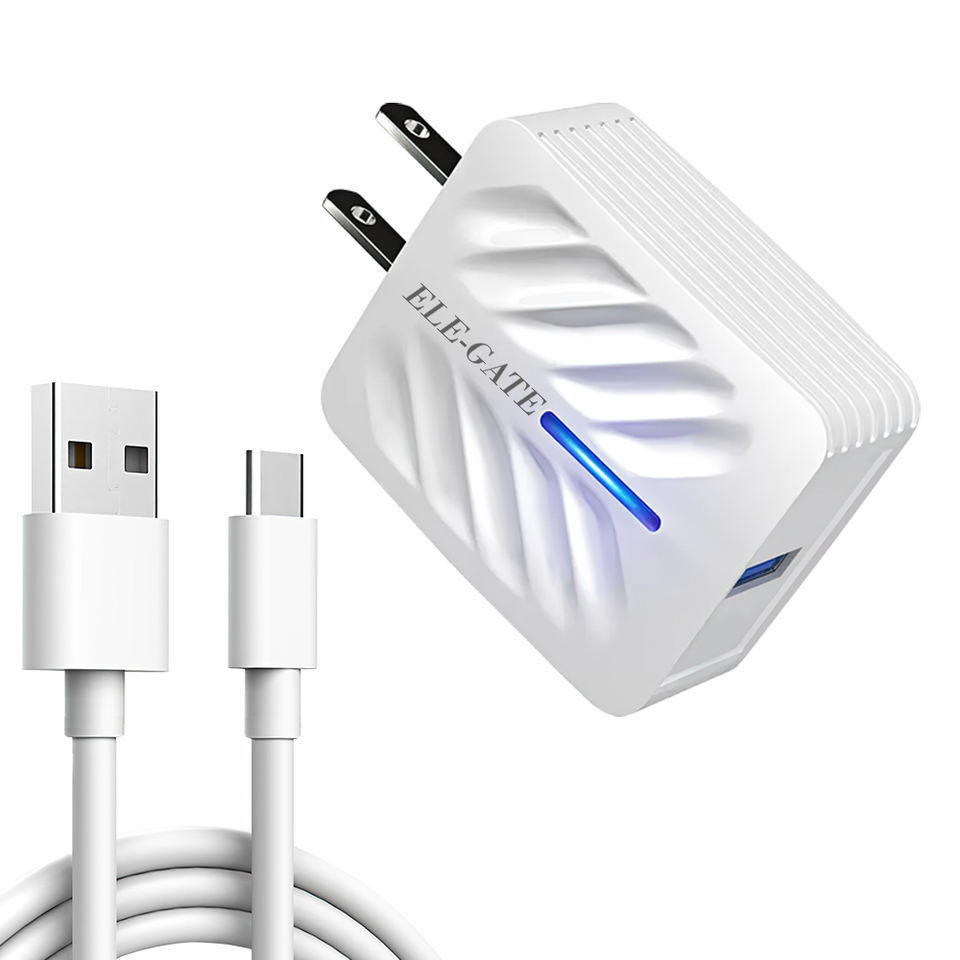 Caricabatterie QC3.0 a ricarica rapida per cellulari e auricolari con cavo Type-C, uscita 5V3A, compatibile con prese JP, EU, US