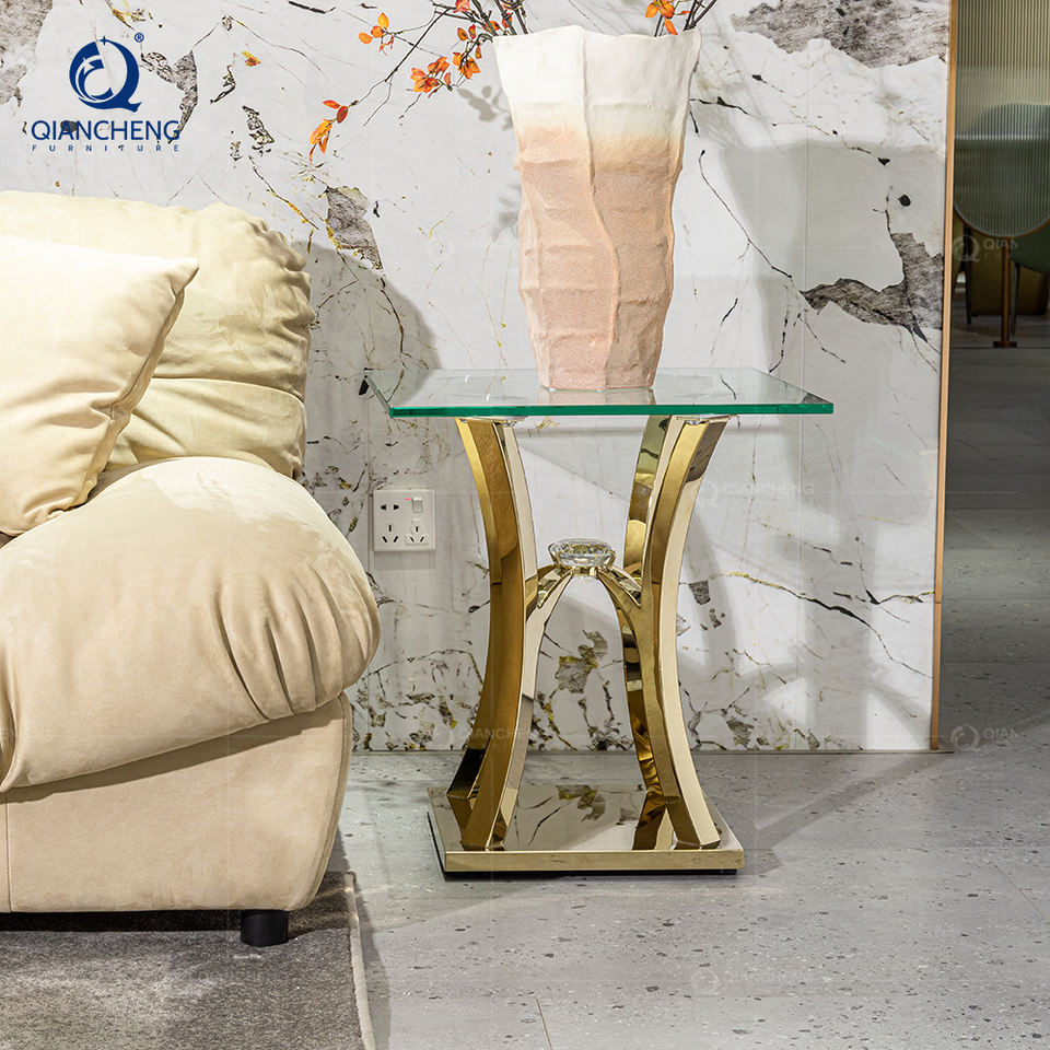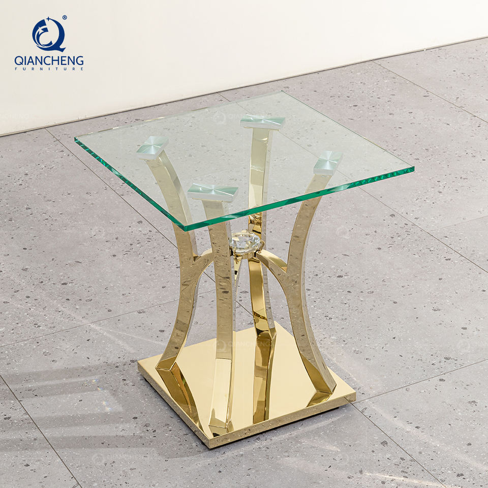 QIANCHENG High Quality Space Saving 50x50 Home Goods Glass Top Crushed Diamond Mirrored square Gold Coffee Table