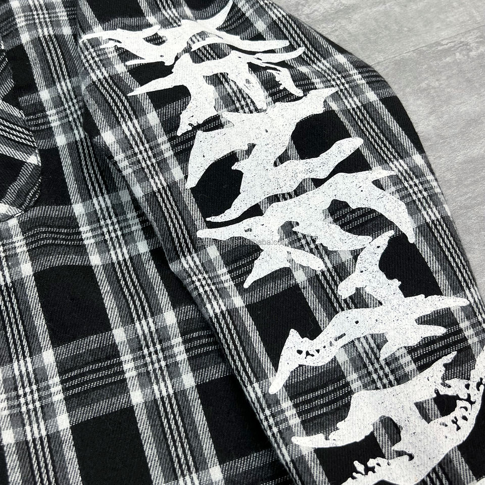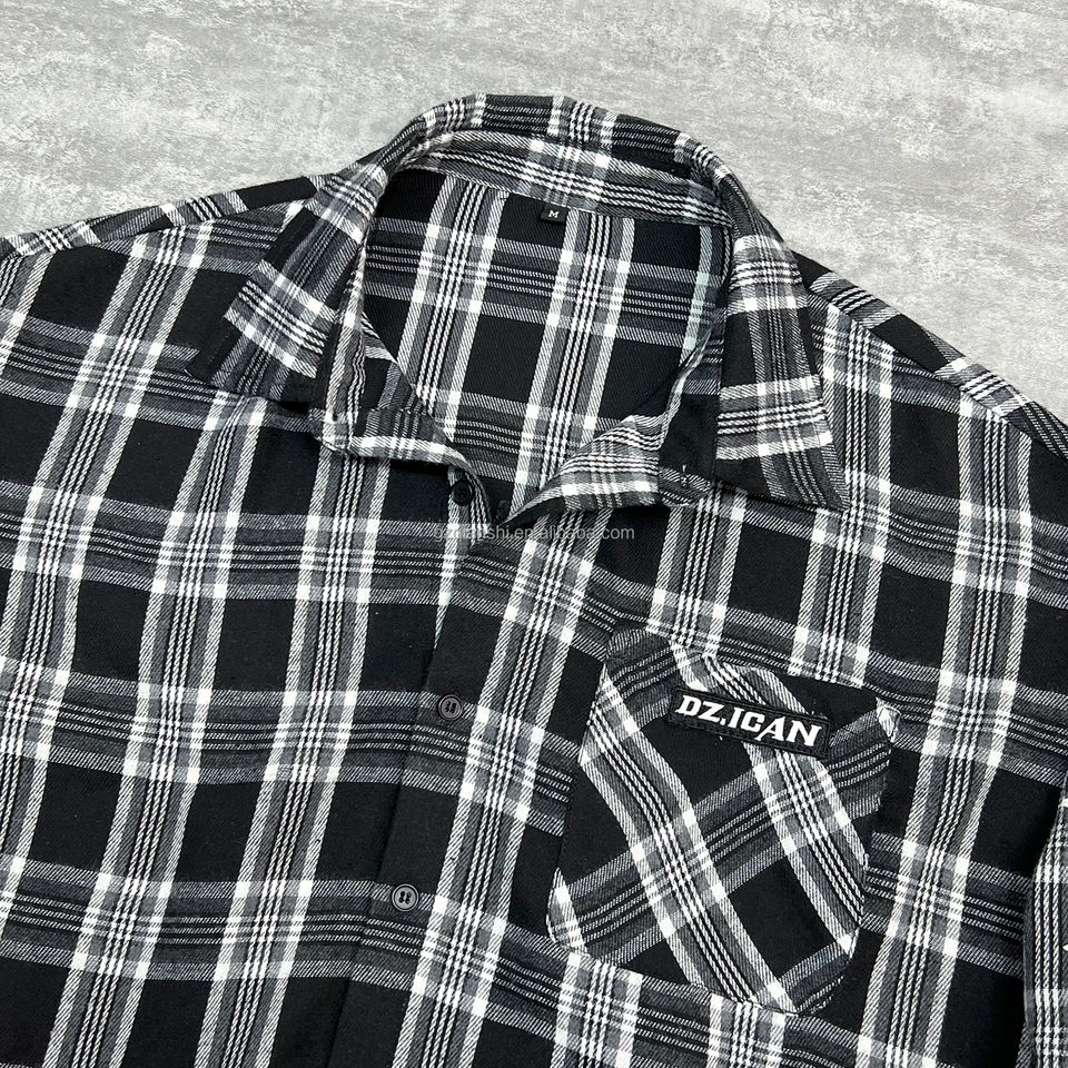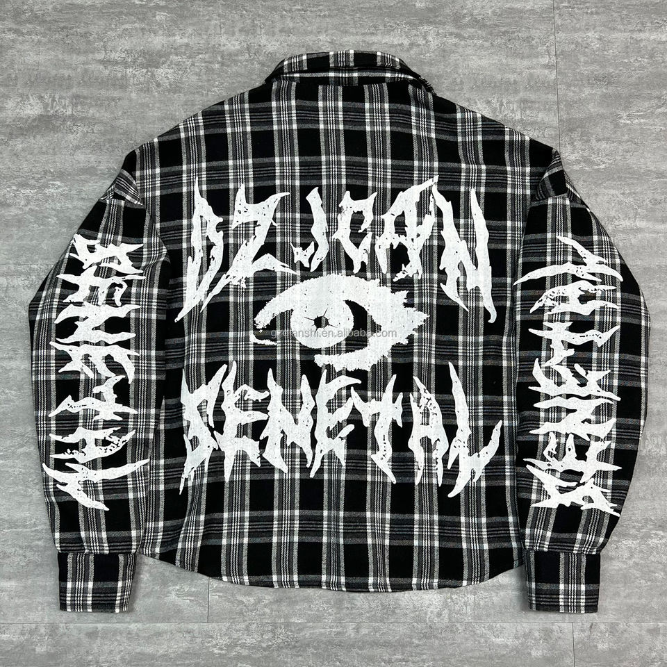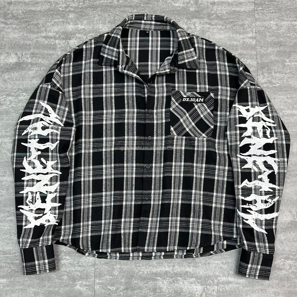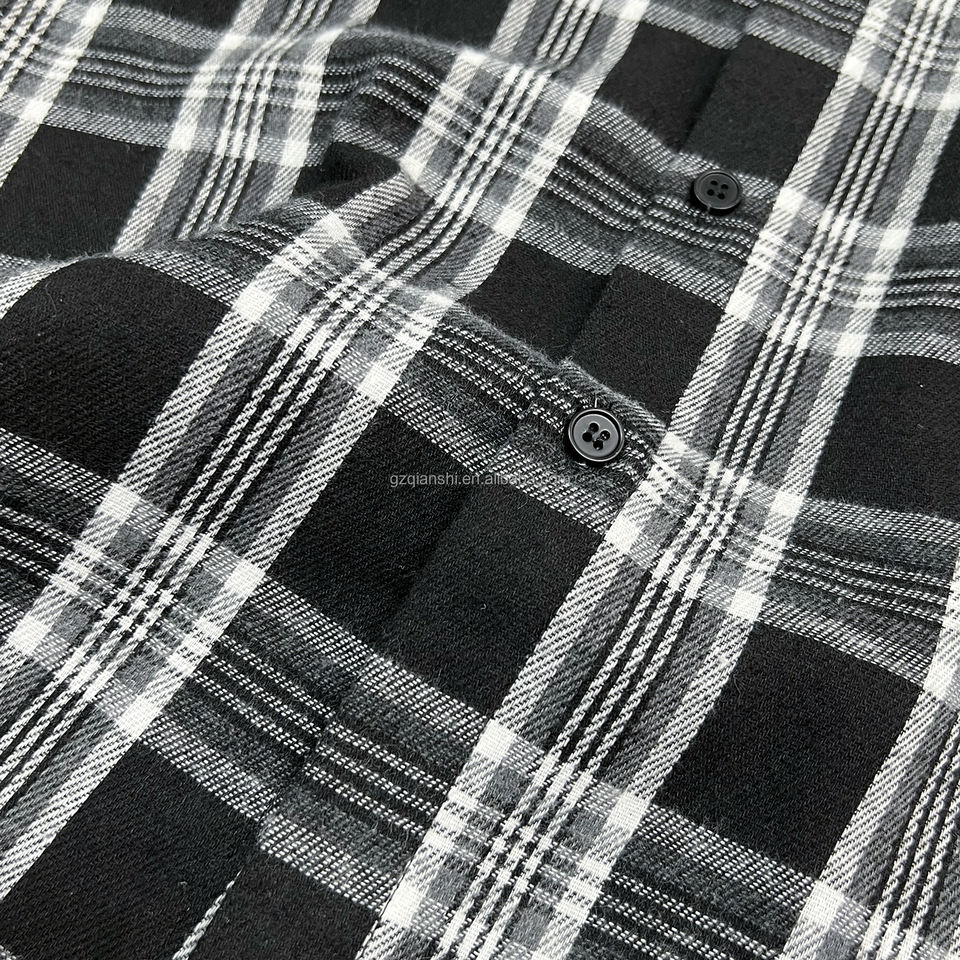 T-Shirt con stampa grafica oversize di QIANSHI camicia di design personalizzata a maniche lunghe termica camicia di flanella in cotone con bottoni e Plaid